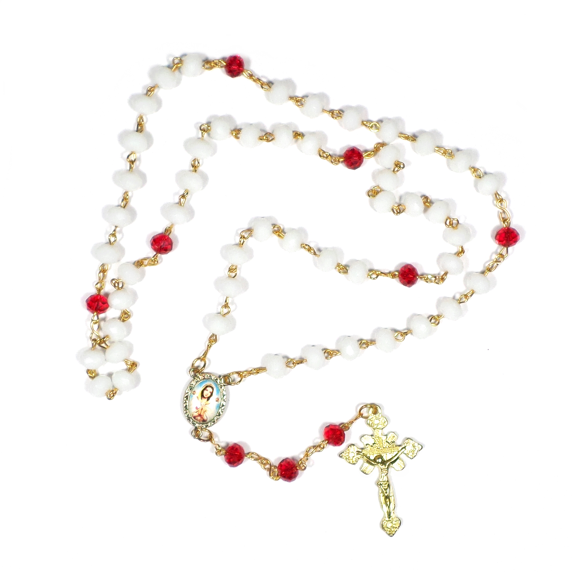 O Terço Rosa Mística da Candeeiro é um produto artesanal, todo feito a mão com contas de bolas acrílico sextavado, entremeio resinado e crucifixo de metal zamac. Possui a configuração de 7 conjuntos de 7 contas cada, assim podendo meditar as Sete Dores de Jesus Cristo a fim de que Ele atenda “as nossas súplicas em virtude das lágrimas de sangue da Vossa Mãe Santíssima”.