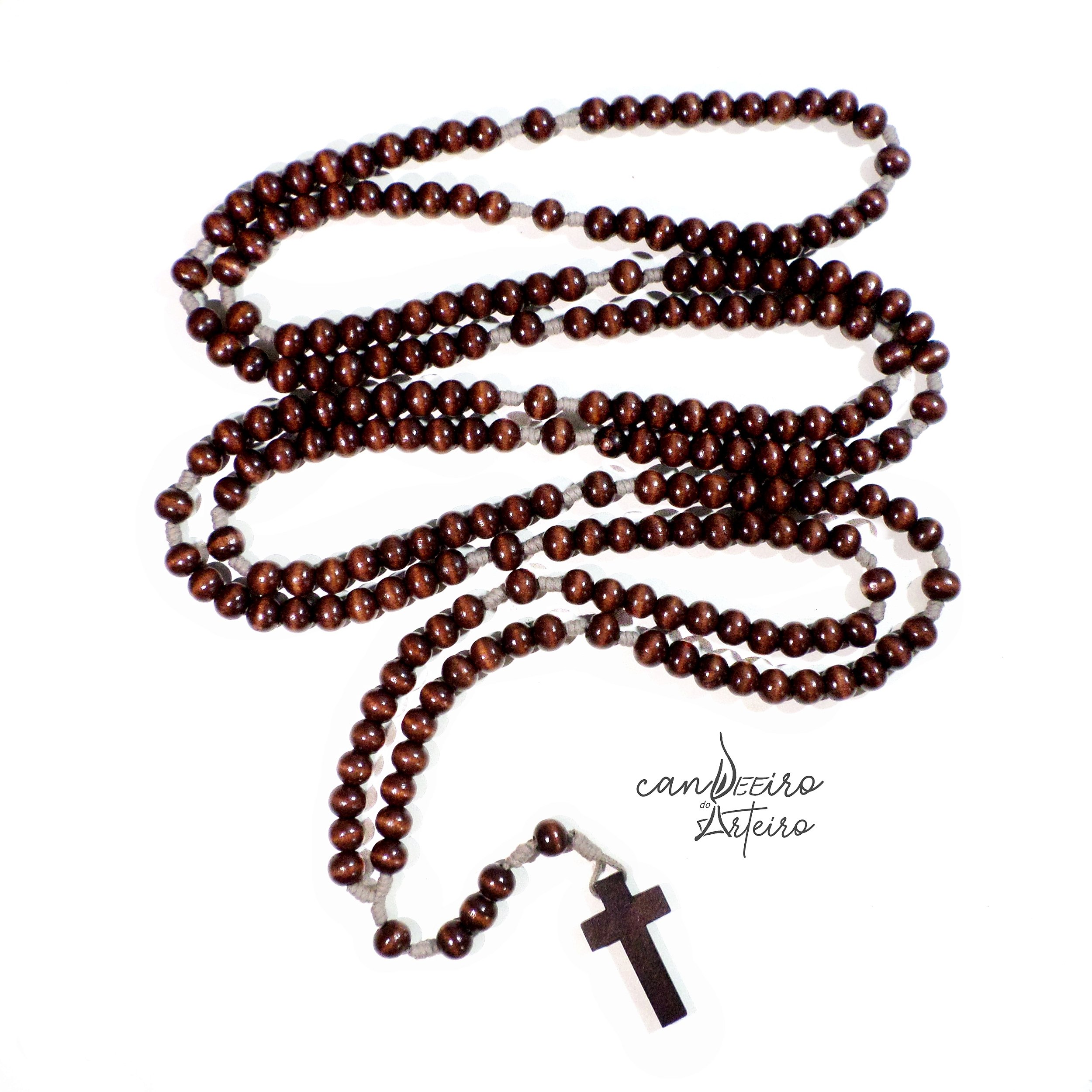 O Rosário 4 Terço / Mistérios é um produto artesanal, todo feito a mão com contas de bolas e crucifixo em madeira e cordão. Possui composição para poder rezar e meditar os Quatro Mistérioso do Santo Terço, contendo 20 dezenas de contas para a oração da Ave Maria mais as contas para a oração do Pai Nosso e as três primeiras Ave Marias.