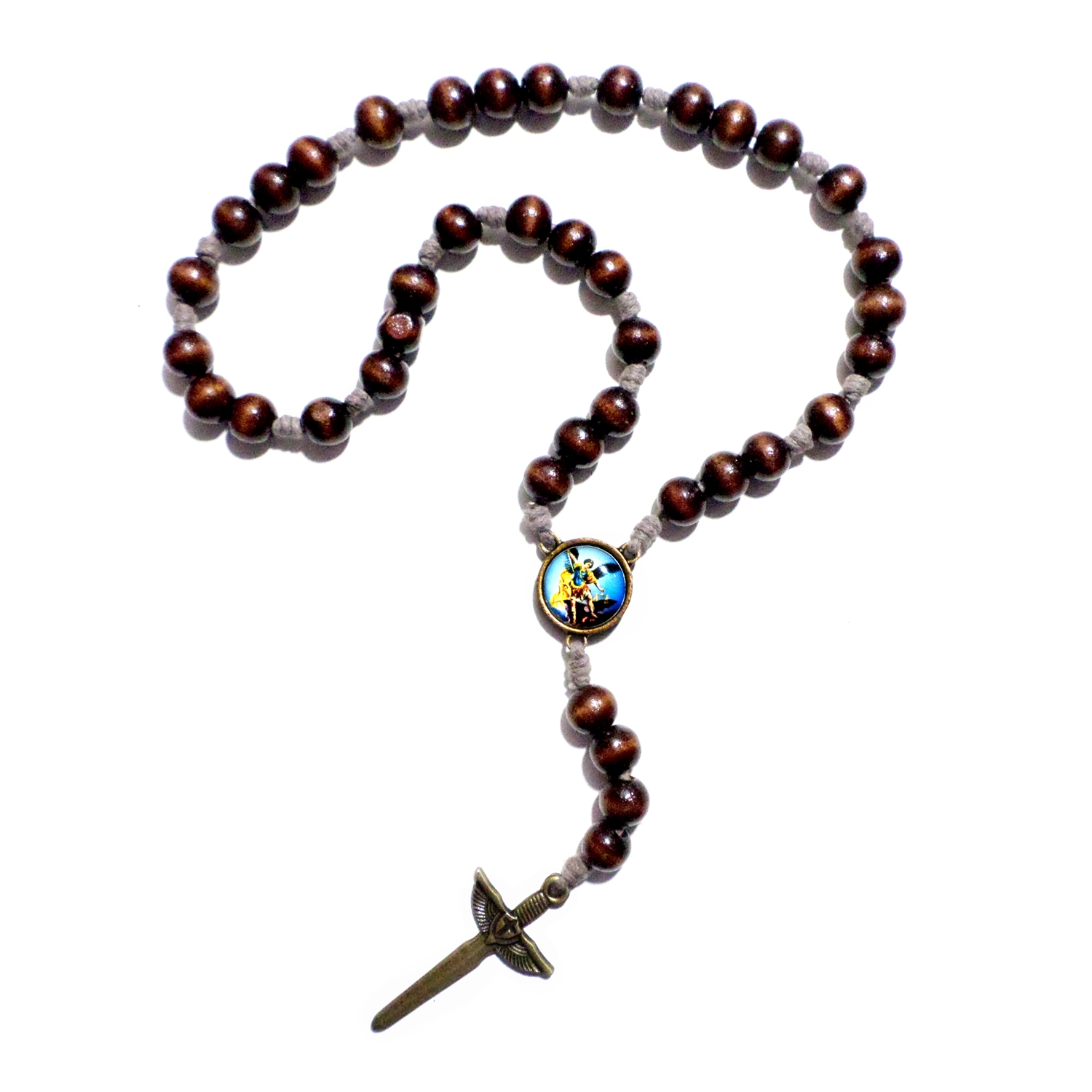Terço Coroa Angélica de São Miguel Arcanjo Madeira 10mm