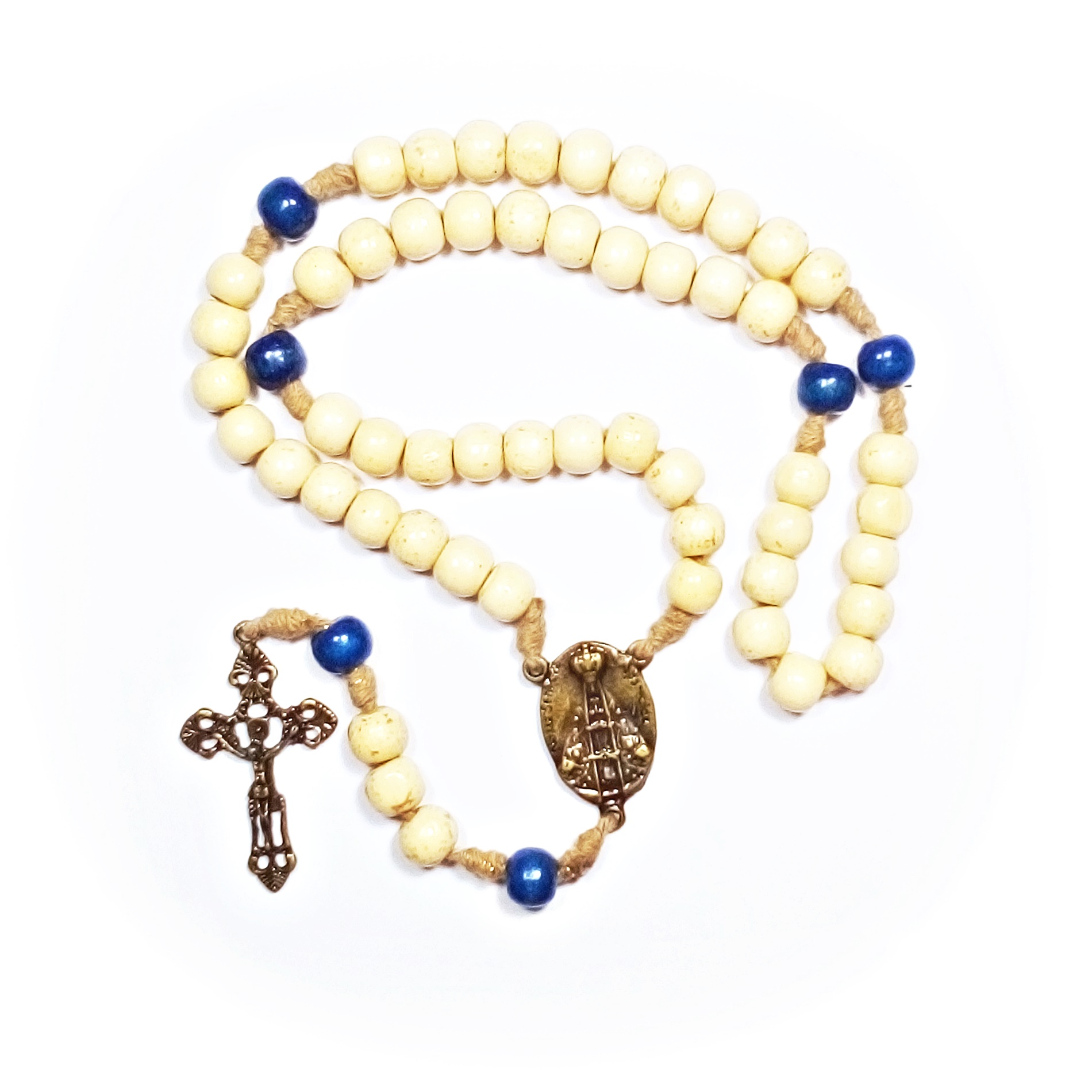 Terço Medalha N.S.Aparecida Madeira e Metal 45cm Bege
