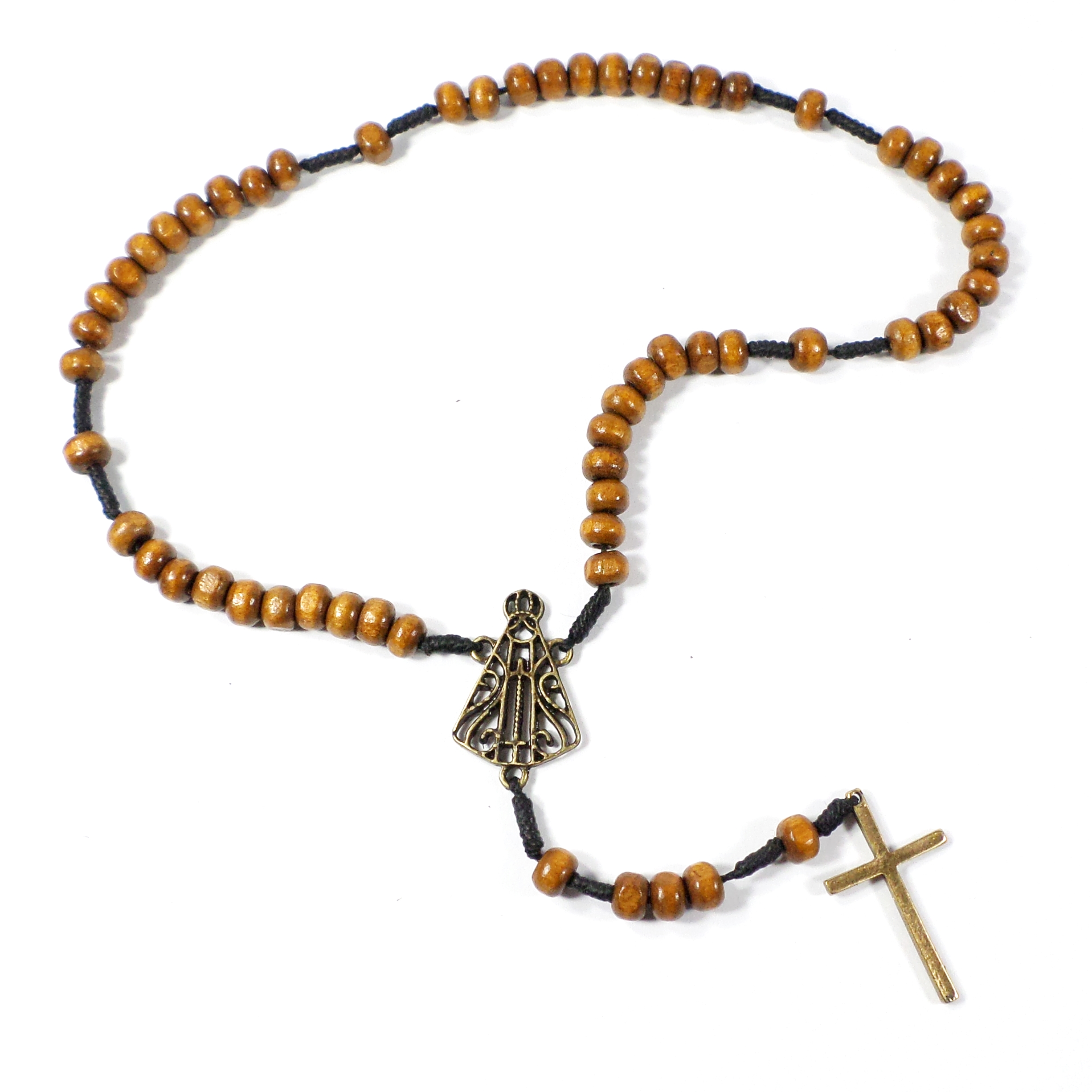 O Terço Nossa Senhora Aparecida Madeira é um produto artesanal, todo feito a mão com contas de miçangas de madeira, entremeio e crucifixo em metal e cordão. Possui a composição clássica do Santo Terço, contendo cinco dezenas de contas para a oração da Ave Maria mais as contas para a oração do Pai Nosso e as três primeiras Ave Marias.